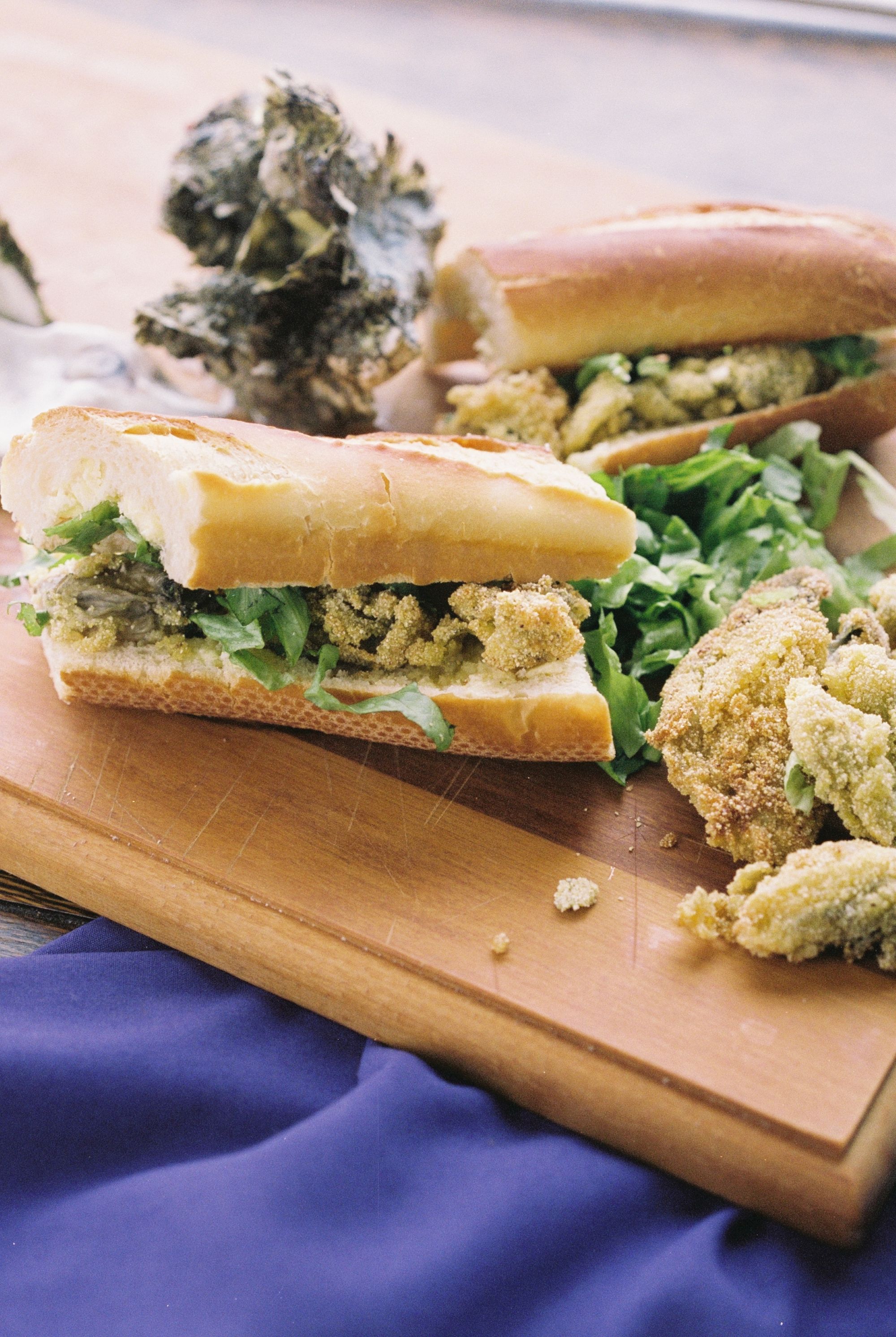 Alternatively coat your oysters in flour, egg and then polenta with a hint of chilli or paprika in it and fry them before putting into a piece of baguette with lettuce and mayo, and voila you have an oyster Po’Boy, the sandwich made in New Orleans to feed the striking tram drivers for free.